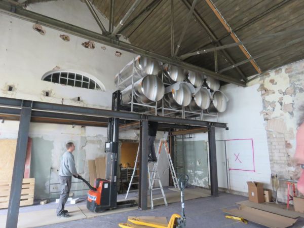 Aufregend gestaltete sich die Installation unserer Ausschanktanks, die am Montag, den 18.2. geliefert und am Dienstag wie geplant auf die Stahlgestelle montiert werden konnten.